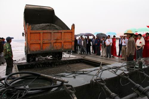 由公司承建的金昌機(jī)場停機(jī)坪工程按4C標(biāo)準(zhǔn)設(shè)計,站坪機(jī)位4個(2B2C),總面積2.65萬平方米,可供波音737和空客320等機(jī)型的起降。該項工程自2009年10月進(jìn)場,公司金昌機(jī)場項目部全體人員在高溫酷暑、大風(fēng)揚沙等惡劣氣候條件下,克服種種困難,通過改進(jìn)施工工藝、調(diào)整作業(yè)時間等措施,順利完成了基礎(chǔ)施工。項目部僅用了25個晝夜就完成停機(jī)坪2.65萬平方米混凝土道面工程施工。