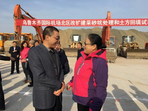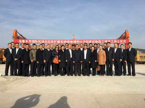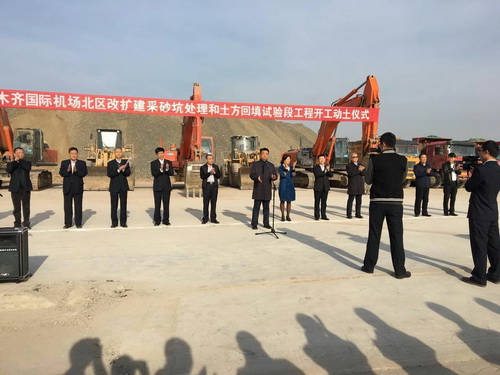2016年10月16日上午11時,我司承建的新疆烏魯木齊國際機場北區改擴建工程采砂坑處理和土方回填試驗段工程Ⅰ標段項目順舉行了開工儀式。