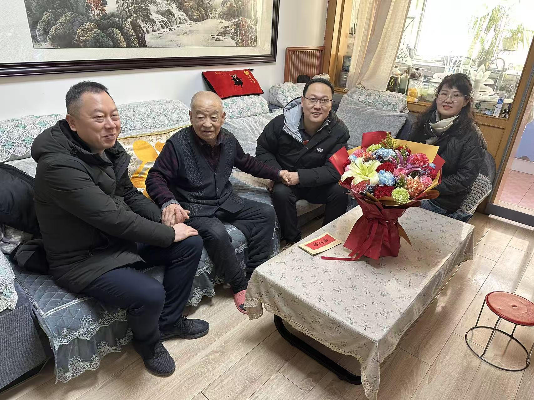 新春佳節將至,2月6日,西固區非公有制經濟組織黨委委員丁輝同志與公司黨委書記一行,專程走訪慰問公司97歲高齡的建國前黨員張升元,為老人送去黨和政府的關懷溫暖與節日美好祝福。